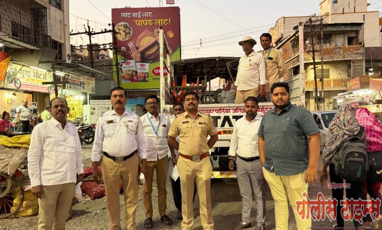 कापड बाजार परिसरात शहर वाहतूक शाखा, अहिल्यानगर व महानगरपालिका अतिक्रमण पथकाची विशेष कारवाई
